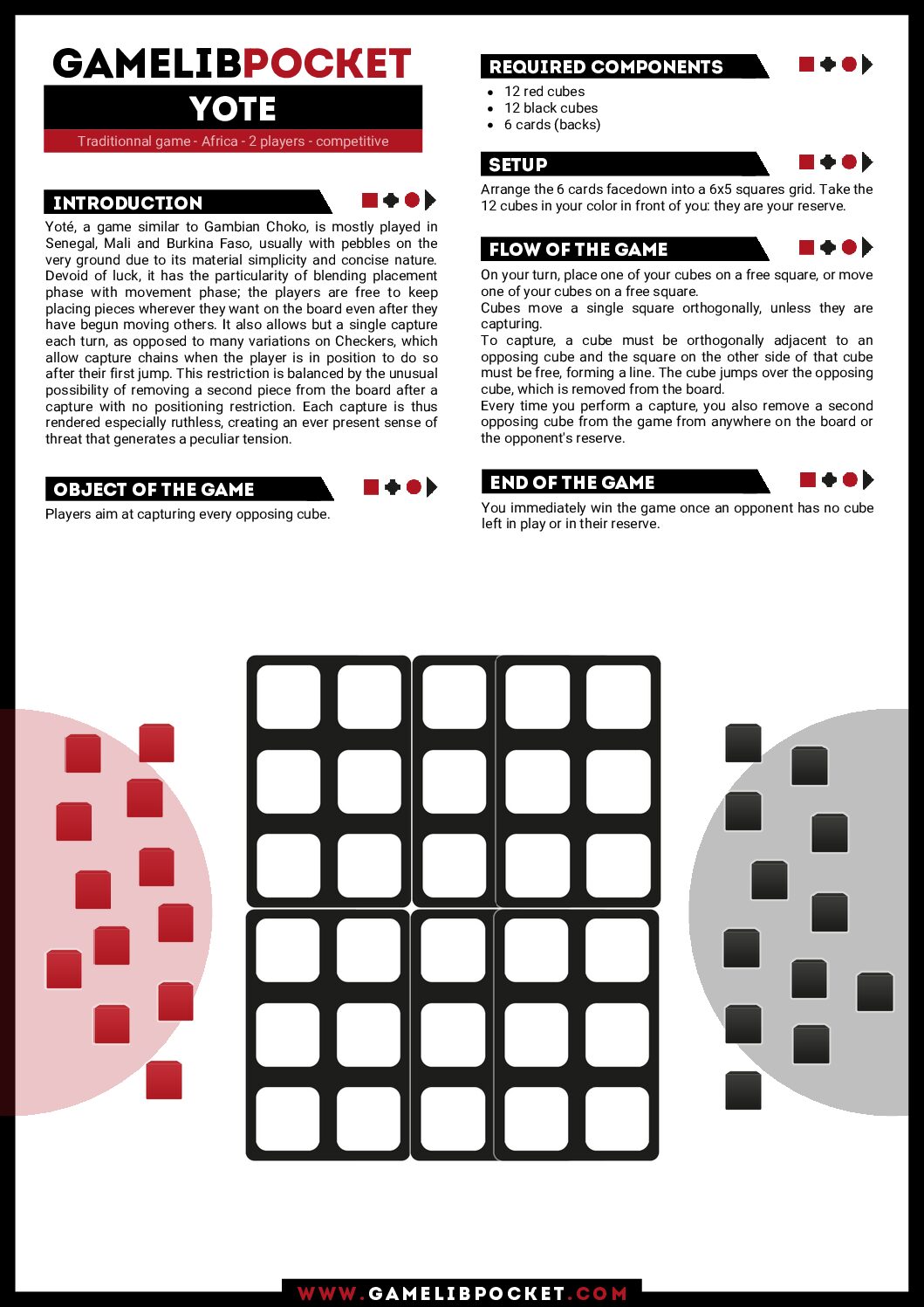 Découvrez, téléchargez et jouez avec nos règles de jeu en PDF, qui ne sont pas seulement une invitation à jouer, mais aussi une fenêtre ouverte sur les cultures du monde. Plongez dans l’histoire des jeux, explorez les traditions ludiques d’autres pays et enrichissez vos connaissances tout en vous amusant !